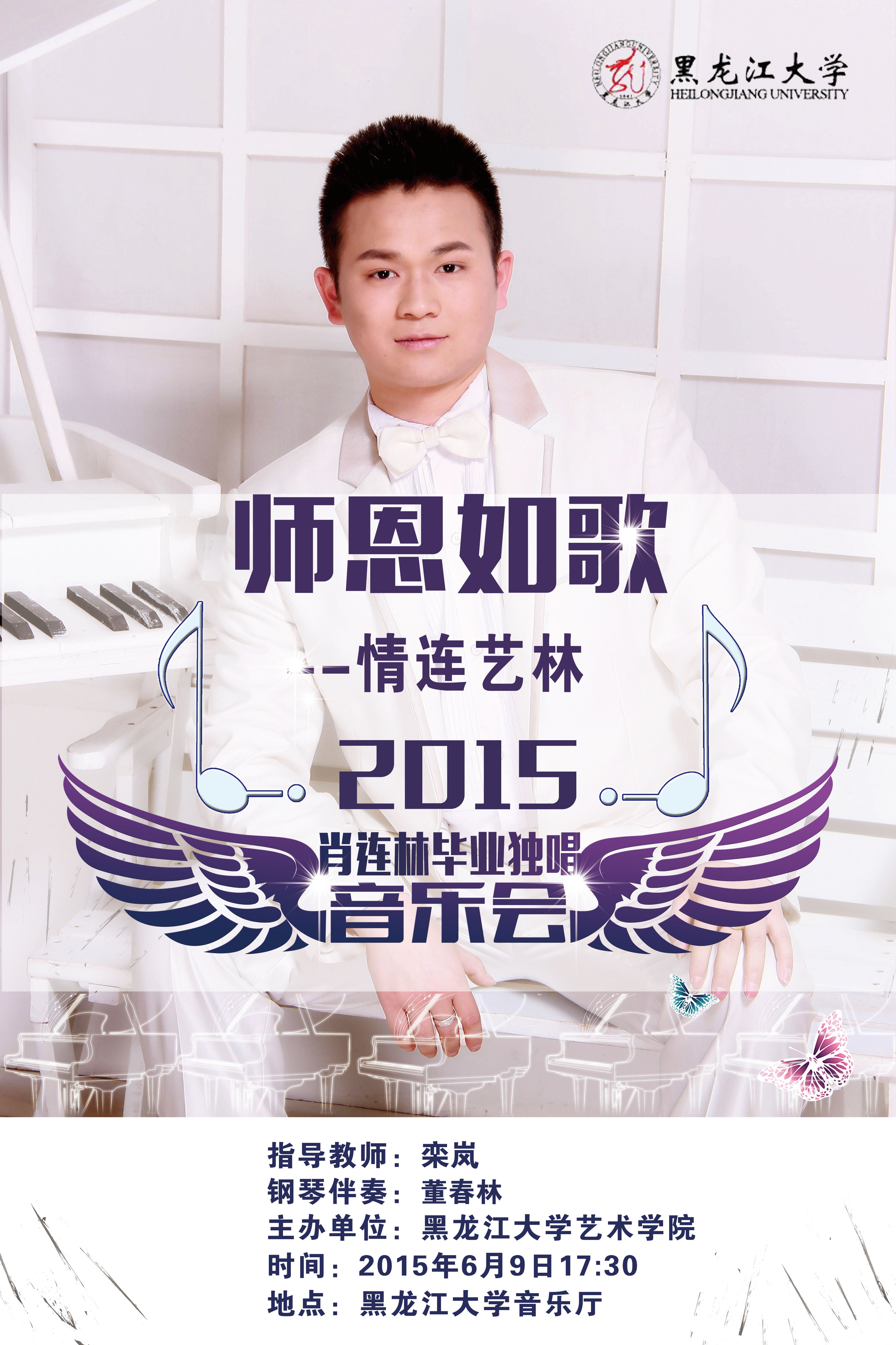 邀请函 兹定于2015年6月9日(星期二)17:30分举办yl9193永利集团2011级学生肖连林“师恩如歌——情连艺林肖连林独唱音乐会”,诚挚邀请全校师生届时光临指导! 邀请人:栾岚 肖连林