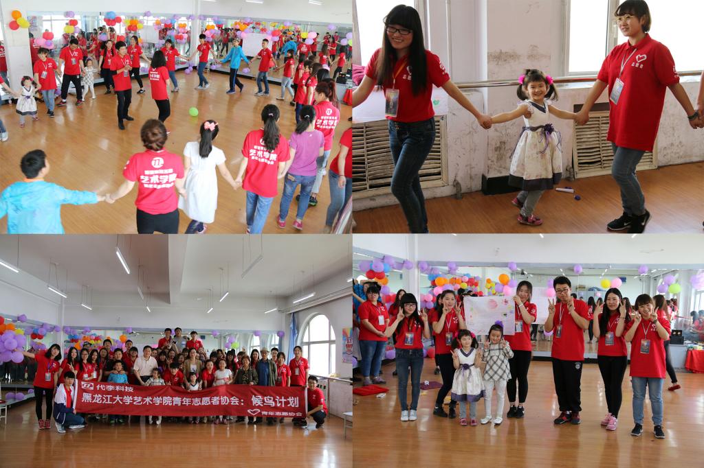 上午七点志愿者早早就在艺术楼625集合完毕,再一次检查了此次活动的场地布置。家长和孩子们陆陆续续到达了活动地点,志愿者与家长们进行了密切的交流。在交流中志愿者详细了解和记录了孩子们的性格特点和生活学习情况。待孩子们到达后,“破冰”行动正式开启。此次“破冰”行动首先进行了“破冰”分组环节,此环节分为三个步骤:一是集中孩子们,针对不同年龄段的孩子进行分组;二是由志愿者协助孩子们利用半个小时时间讨论出各组队名、口号、宣言、队歌,并画出一幅属于自己队的展示画然后进行小组展示。志愿者与孩子们进行初步了解,之后便迅速进入游戏环节,先是整体游戏——桃花朵朵开,随后进行了团队协作游戏——火线支援,成功营造了整体的活跃气氛,志愿者和孩子们更加熟悉起来。“破冰”游戏结束后,大家进行短暂的休息志愿者为孩子们分发牛奶和点心,之后由每个小朋友独立完成了一幅主题为“我眼中的哈尔滨”的简笔画送给志愿者。大家共同签字并集体留念。活动结束后,志愿者带着家长及孩子到C区食堂为他们提供免费午餐,饭后志愿者将家长和孩子们安全送出。