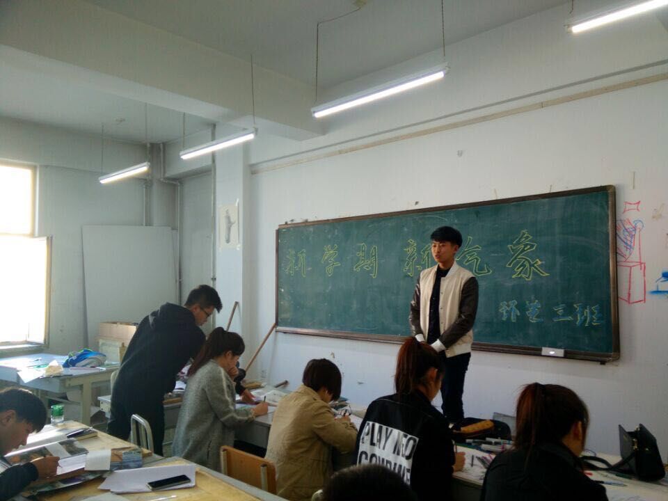 班会的开始丁富禹同学首先对环境艺术设计三班上学期的表现做出了总结,2014年9月,环境艺术设计三班的同学来自四面八方带着共同的梦想,带着一样的目标,带着成功的喜悦,相聚在永利官网。上学期大家从懵懵懂的高中生,步入大学这座象牙塔,到后期经过全班同学的共同努力成功参加了学院的迎新晚会,每一步都展现出每一位平凡同学不平凡的光彩。