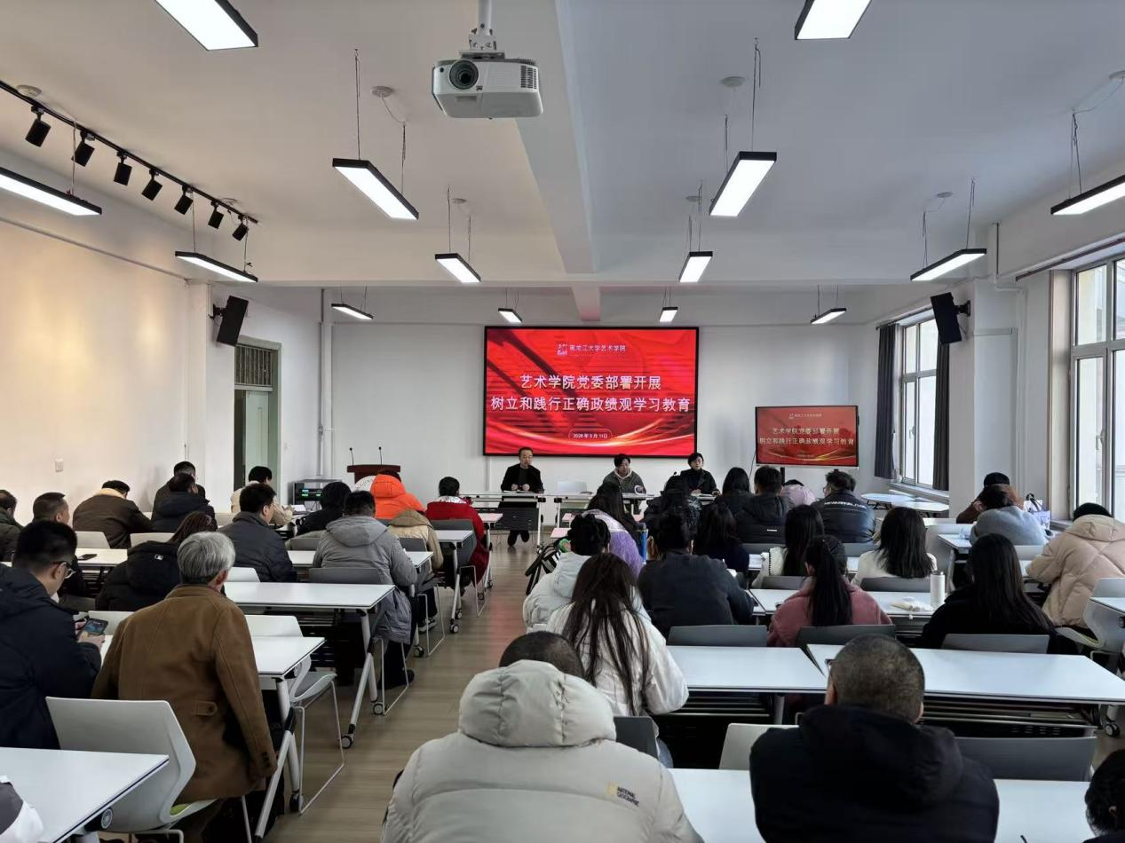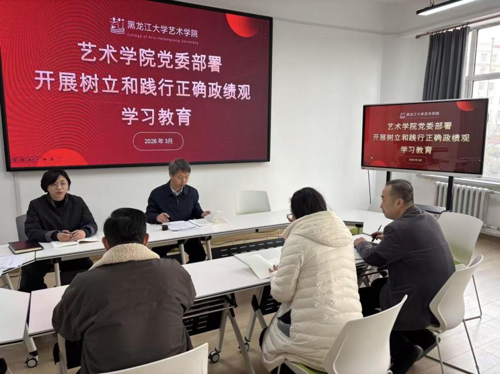 在学院党委层面,党委书记朱清桃带领党委委员集体学习了深入学习贯彻习近平总书记关于树立和践行正确政绩观的重要论述,学习《关于在全党开展树立和践行正确政绩观学习教育的通知》等文件和工作提示要求。党委委员结合自身工作实际,围绕“什么是正确政绩观、怎样树立和践行正确政绩观”开展初步交流研讨,进一步深化思想认识。朱清桃强调要把正确政绩观要求贯穿学院发展全过程,牢牢把握艺术教育立德树人根本任务,不搞脱离实际的“形象工程”,把工作重心放在服务师生成长、推动学科发展上。