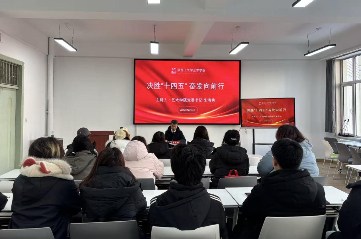 朱清桃通过回顾“十四五”取得的辉煌成就,让学生深刻感受“十四五”期间创新潜力、改革动力、开放活力,感受到举国上下决战决胜“十四五”精气神。通过紧密联系国家“十四五”规划收官与“十五五”谋划的关键节点的战略部署与宏伟蓝图,深刻阐释了在全面建设社会主义现代化国家新征程中,文化艺术事业所承载的重要使命。他指出艺术学子必须深刻认识自身专业学习与国家发展大势的内在联系,将个人艺术理想融入党和人民的事业之中,用手中的画笔、旋律、舞姿、镜头去描绘新时代、歌颂新征程。