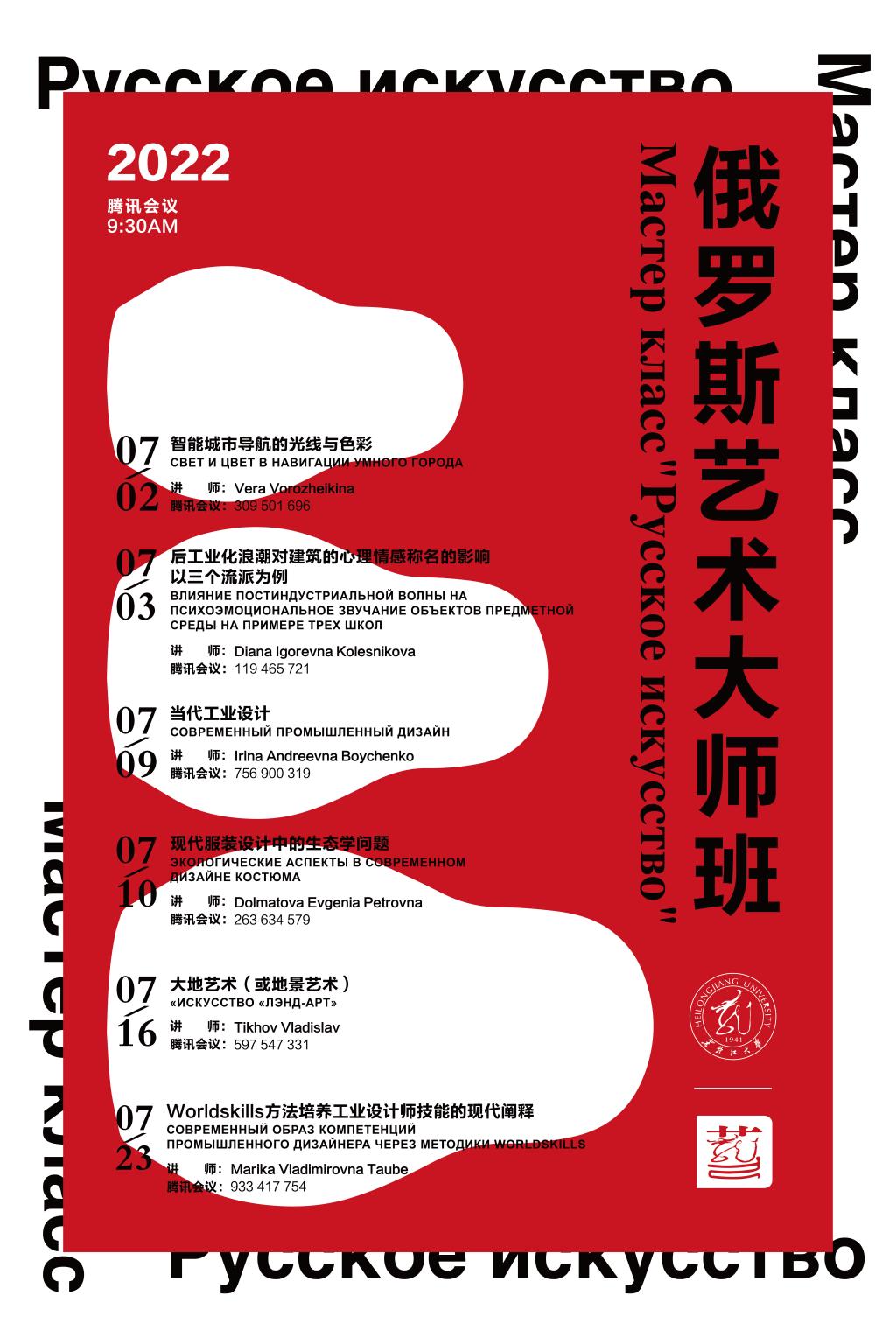 我院将于7月2日、3日、9日、10日、16日、23日举办“俄罗斯艺术大师班”线上讲座,欢迎各位老师参加,请大家进入会议室后关闭麦克风,并将本人昵称改为“永利官网+本人姓名”