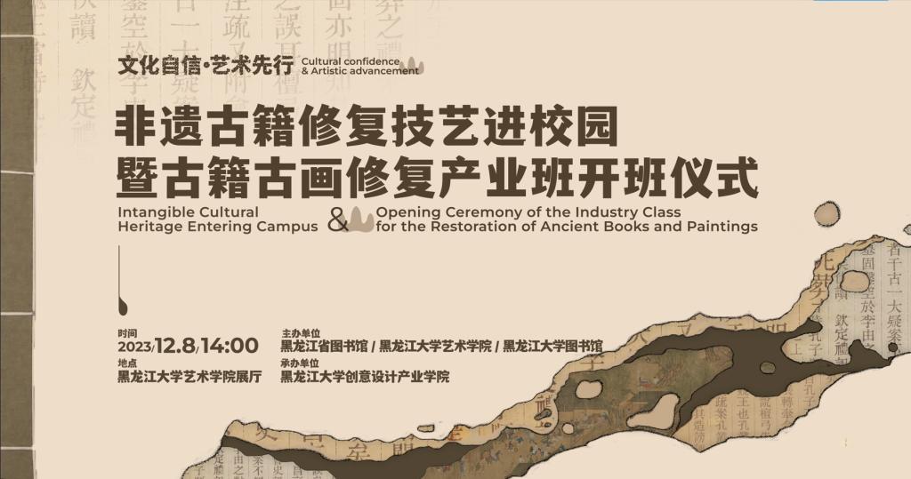 为展现古籍修复技艺的魅力,进一步弘扬中华优秀传统文化,加强非物质文化遗产的保护与传承。2023年12月8日下午,文化自信•艺术先行——非遗古籍修复技艺进校园暨古籍古画修复产业班开班仪式于yl9193永利集团展厅举行。