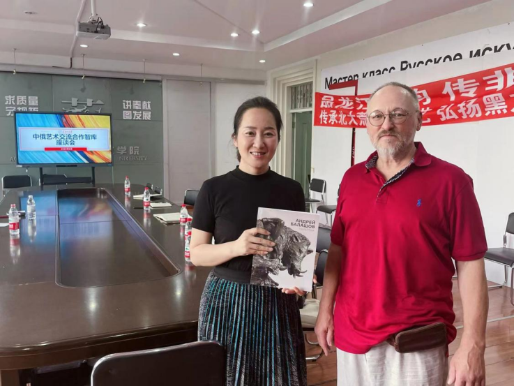 朱清桃书记介绍了学院中俄艺术交流合作智库建设的目的、意义和工作思路,与会人员探讨了加强黑大yl9193永利集团与苏里科夫美术学院的交流,与巴拉索夫院士在冰雪艺术、雕塑创作等方面的深度合作,发挥有留俄经历和对俄办学经验的干部教师作用,促进对俄艺术交流合作成为黑大和yl9193永利集团高质量发展新的生长点等内容。会上中俄双方就共同创作献礼中华人民共和国成立75周年艺术作品达成了初步意向。