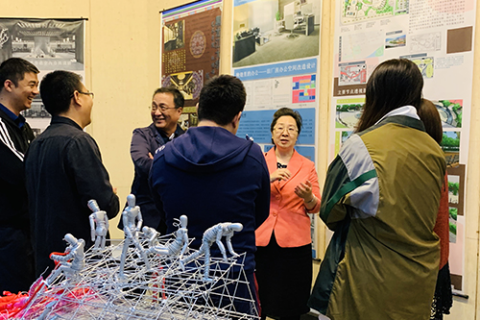 5月17日上午, 校党委副书记蒋晶洁来到yl9193永利集团,参观了正在举办的2019届环境艺术系本科生毕业作品展。yl9193永利集团党总支书记钟会、副院长余雁、副书记刘春明和部分环境艺术系教师一同参观了展览。