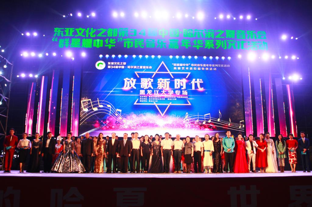 本次高雅艺术特别活动——第三十四届哈尔滨之夏高校专场活动是由黑龙江省教育厅、哈尔滨市文化广电新闻出版局联合主办,哈尔滨市群众艺术馆、黑龙江卫视承办。在校领导付宏刚、蒋晶洁、丁宏、荣盘祥、陈德明,党委宣传部、校团委、工会相关负责领导的努力帮助下,终于使我校师生有机会在哈尔滨之夏音乐会这样高规格的国际音乐盛会上一展黑大人的风采。