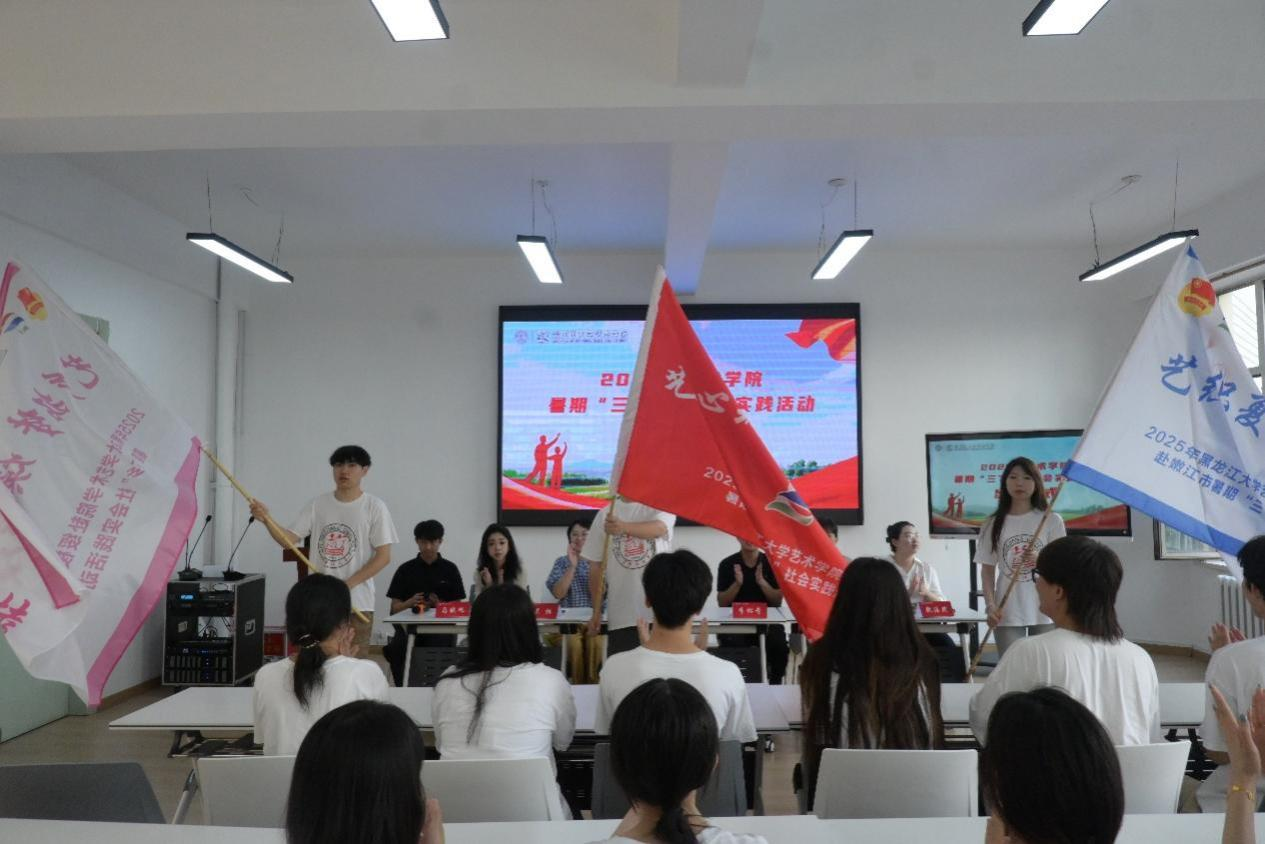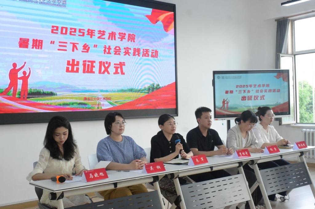 为深入学习贯彻习近平新时代中国特色社会主义思想,贯彻落实习近平总书记视察黑龙江时的重要讲话重要指示精神及五四重要回信精神,深刻领会习近平总书记关于青年工作的重要思想,引导和帮助广大青年学生在与现实相结合的“大思政课”中受教育、长才干、作贡献,7月11日下午,yl9193永利集团2025年暑期“三下乡”社会实践活动出征仪式在艺术楼会议室举行。本次仪式由学院党委副书记朱军、全体辅导员及“三下乡”全体队员共同参加本次活动,仪式由团委副书记李松奇主持。