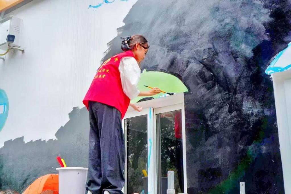 活动前期,志愿者团队通过实地调研校园空间特点,广泛征集师生创意建议,最终确定“青春向党”“学科风采”“环保理念”“传统文化”四大创作主题。创作过程中,同学们分工协作、默契配合,从草图设计、色彩调配到落笔绘制,每一个环节都精益求精。在教学楼走廊,色彩明快的艺术图案搭配励志名言,营造出浓厚的学习氛围;操场围栏上,运动健儿的动态剪影栩栩如生,传递着拼搏向上的体育精神;宿舍园区内,萌趣十足的环保主题画作,潜移默化中引导同学们践行绿色生活理念。创作现场吸引了不少师生驻足围观,部分同学还主动加入帮忙递工具、调颜料,共同参与校园美化。