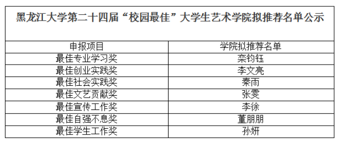 根据校团委《关于评选永利官网第二十四届“校园最佳”大学生的通知》的相关要求,为树立和宣传青春榜样,表彰我校综合素质全面发展且具有一定特长的优秀学生,学校决定举办永利官网第二十四届“校园最佳”大学生评选活动。本着公平、公正、公开的原则,经学生本人提交申请,学院线上审核、评定,现对永利官网第二十四届“校园最佳”大学生yl9193永利集团拟向学校推荐名单进行公示。