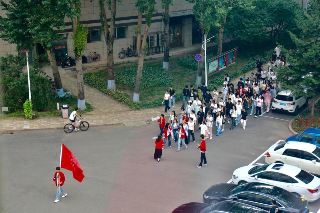 活动伊始,团委学生干部带领新生队伍在大学生活动中心楼下集合,待新生全部集合完毕后,学生干部作为讲解员与引导员,带领新生们开启校园探索之旅。